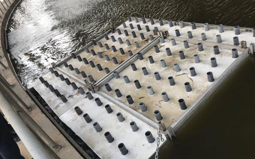 特拉多姆浸入式水处理器采用圆柱形铝棒形态,通过定制安装支架固定到位。
