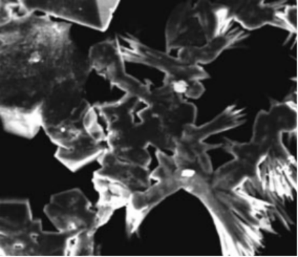 CaCO₃晶体的微观结构由针状转变为颗粒状。针状晶体不易相互交联,流动水流可将其冲刷带走。在静水中,水垢以松散絮状沉积于容器底部,不易形成坚硬水垢层。