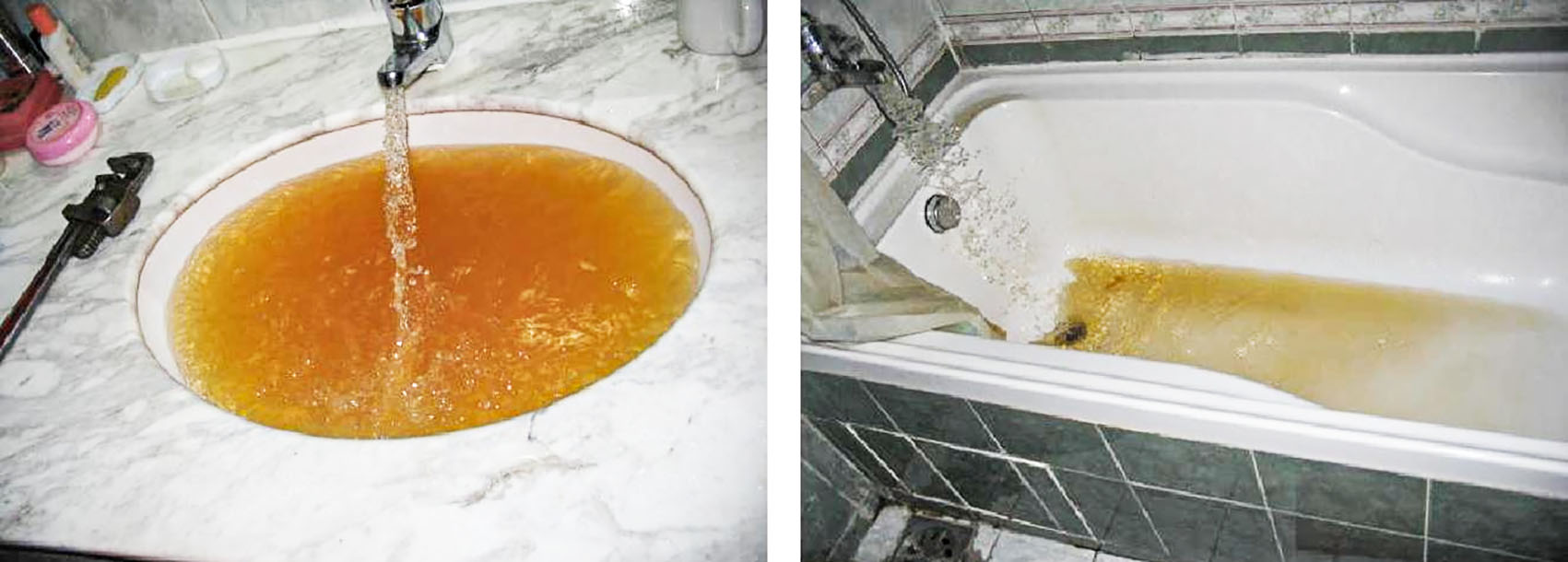 高端外商公寓,共25层。客户房间供水采用变频泵高楼层供水系统,主要使用镀锌管。管道设备运行八年后,管壁内侧出现腐蚀。公寓浴缸及厨房水龙头严重出现红水现象,并夹带泥沙。锅炉给水管道系统中可见明显沙粒状红褐色锈斑。