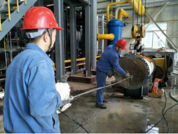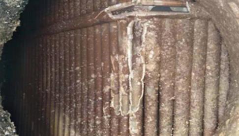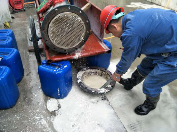 堵塞的管孔需用钻头钻穿,浸泡化学药剂后,再结合高压水枪反复冲洗,通过机械方法逐步清除堵塞物。该清洗过程耗时且需大量人工操作。