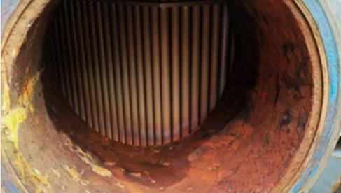 抽气站生产用水硬度较高,导致管道及设备结垢。这严重影响抽气站真空泵、压力泵及辅助设施的安全运行。换热器管束常出现严重结垢堵塞,清洁过程极为困难。