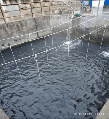 16根浸入式水处理器悬置于循环水池,另有8根安装于水箱,8根安装于冷却塔。