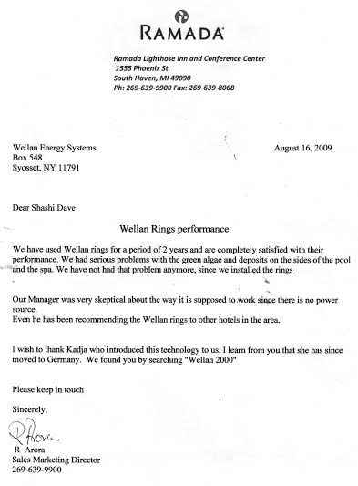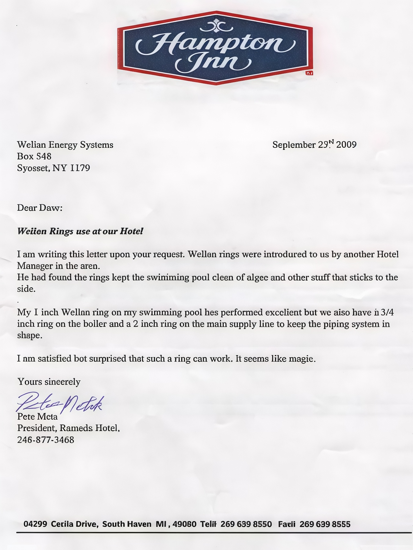 安装Wallen 2000环后,泳池水不再发绿,因其能抑制藻类生长并维持水体pH值稳定,管道内水垢亦逐渐减少。