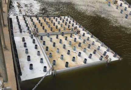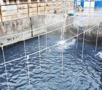 根据安装计划中的数量,量子棒均匀垂直地悬挂在水中。